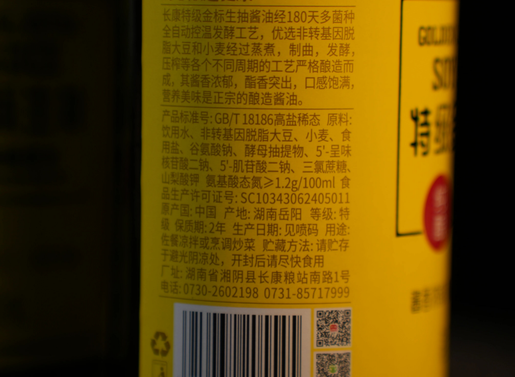 購(gòu)買時(shí)先看配料表,優(yōu)先選釀造醬油,它是以大豆、小麥等為原料,經(jīng)微生物發(fā)酵制成,風(fēng)味濃郁且營(yíng)養(yǎng)價(jià)值高;配制醬油的營(yíng)養(yǎng)和口感則差很多。長(zhǎng)康牌特級(jí)金標(biāo)生抽、純釀紅燒醬油,均精選非轉(zhuǎn)基因大豆和優(yōu)質(zhì)小麥等原料,經(jīng)180天多菌種全自動(dòng)控溫發(fā)酵工藝釀造而成,天然營(yíng)養(yǎng),口感上佳,家庭必備。